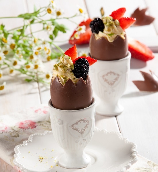 1. Начать следует с заморозки шоколадных яиц на 15-20 минут. После этого яйца аккуратно разделить на половинки, вынув крем изнутри. Верхние края стоит фигурно подрезать ножом, после чего половинки соединяют обратно, пишет Дзен-канал "Рецепты от 7dach".