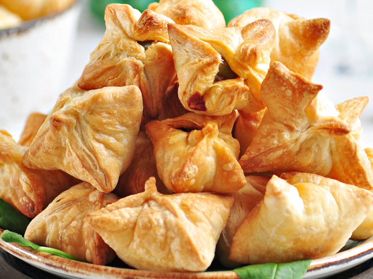 Время подготовить тесто! Выньте 500 граммов слоёного теста из морозилки и оставьте при комнатной температуре, чтобы оно стало эластичным. После этого на припылённой мукой поверхности раскатайте тесто вthin layer и нарежьте его квадратами размером около 3–4 см. Размер имеет значение, так как большие квадраты могут испортить аккуратный вид закуски.