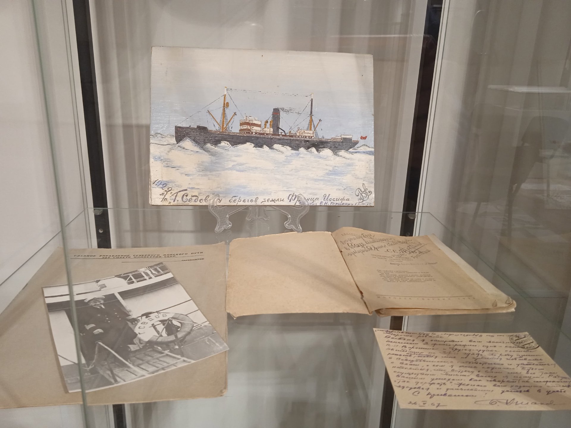 — Выставка «Письма из высоких широт» — это тонкая калька, наложенная на прошлое. Сквозь её белую дымку проступают контуры карт Арктики, силуэты ледокольных пароходов и почерк исследователей, учёных, полярников. Эта история о том, как школьный музей собрал интересную коллекцию о полярных экспедициях и освоении Арктики, — рассказывают в Северодвинском городском краеведческом музее.