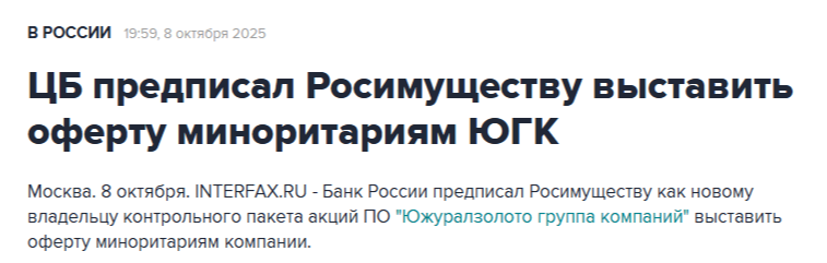 Согласно российскому законодательству, когда изменяется крупный собственник, обладающий более чем 30% акций, компания обязана предложить миноритарным акционерам возможность выкупа их долей. Это должно происходить по средней биржевой цене за шесть месяцев перед оформлением оферты. Однако, несмотря на это требование, государство не предоставило такой возможности миноритариям ЮГК.
