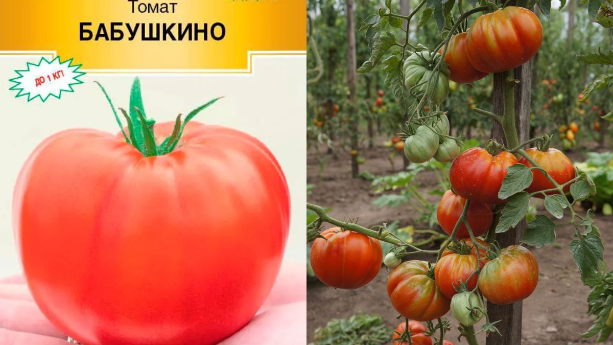 - Бабушкино — настоящая находка для любителей крупных томатов. Плоды могут достигать 500 грамм и требуют особой внимания при подвязке, чтобы ветки не обломались.