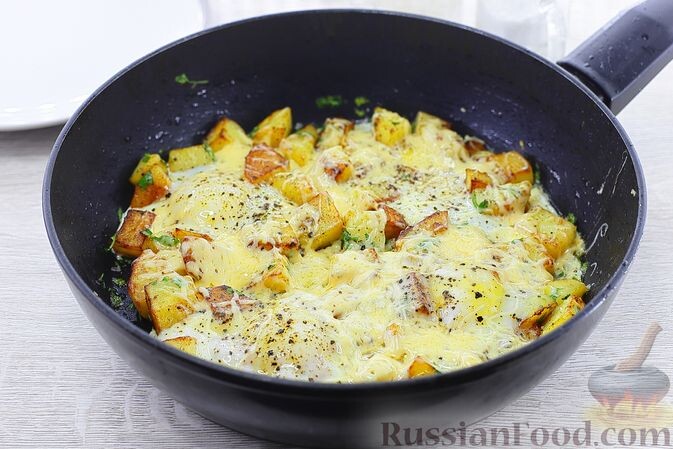 - Яичница с жареной картошкой и сыром: Традиционный завтрак с хрустящей картошкой и плавленым сыром станет настоящим символом сытного утра. Добавление зелени и чеснока лишь укрепит его вкусовые нотки.