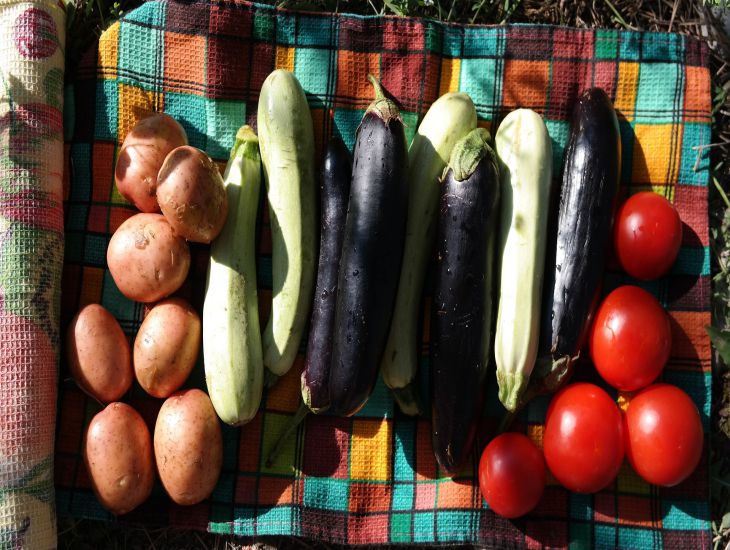 2. В комбайне измельчите томаты, кабачки и картофель.