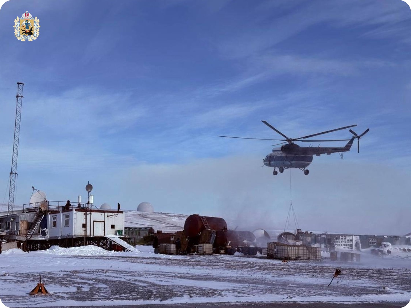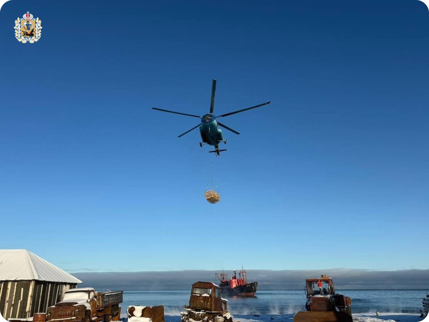 Вертолеты Ми-8 с борта «Михаила Сомова» доставляли на удаленные станции необходимое оборудование, топливо и продовольствие, обеспечивая их бесперебойную работу в период суровой арктической зимы.