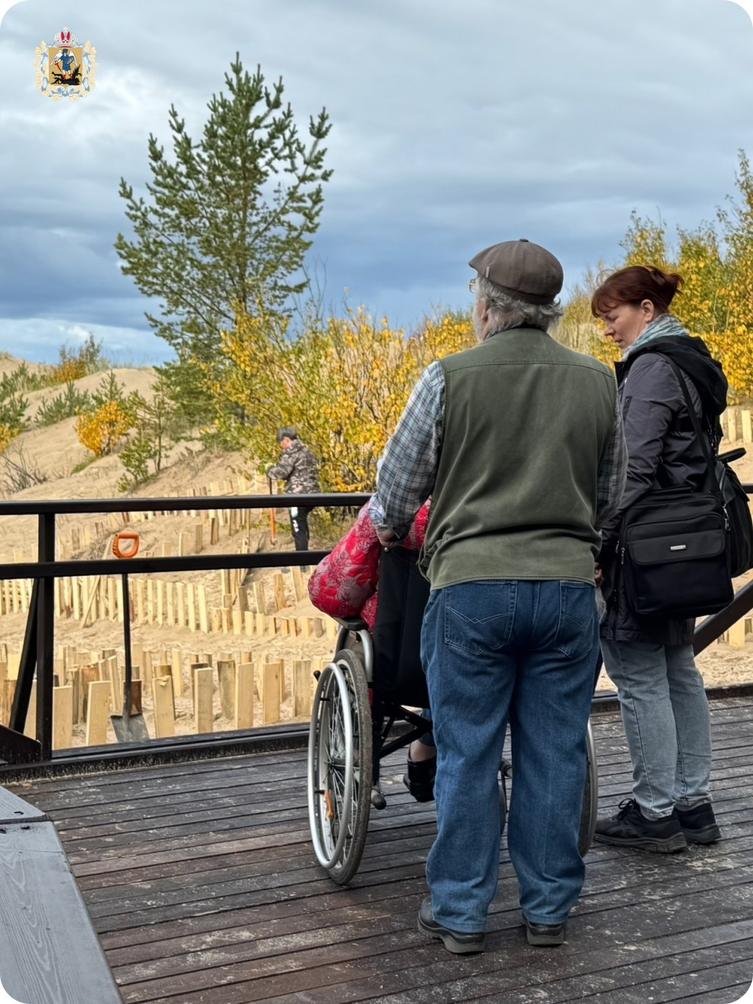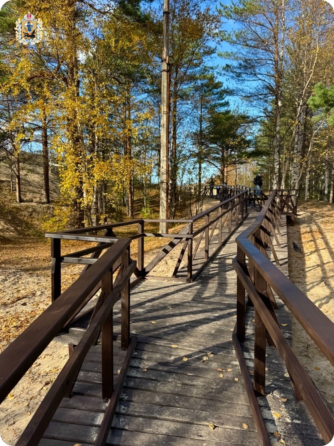 Теперь прогулки по хвойному лесу и возможность полюбоваться дюнами и Белым морем стали доступны для всех: здесь обустроили пандус, три разворотных площадки для маломобильных гостей, удобную лестницу и широкую палубу для пеших прогулок.