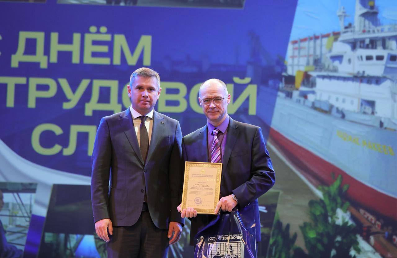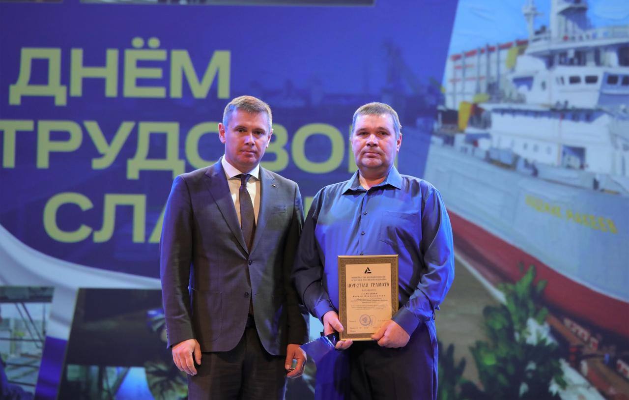 Почетной грамотой министерства промышленности и торговли РФ награждены Андрей Кондратьев, старший строитель кораблей – руководитель группы управления по военно-техническому сотрудничеству, Андрей Семушин, сборщик корпусов металлических судов монтажно-сдаточного цеха, Светлана Угрюмова, инженер-конструктор – руководитель группы конструкторского отдела. Благодарность Губернатора Архангельской области вручена