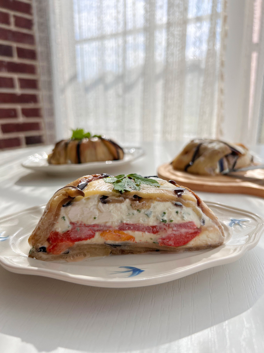 Террин из баклажанов с печёным перцем и нежным сыром — это не просто легкая закуска, а настоящий кулинарный шедевр, который станет изюминкой любого стола. Блюдо прекрасно дополняет как повседневное, так и праздничное меню и привлекает внимание своим ярким и аппетитным внешним видом.