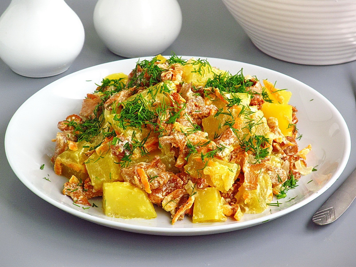 Приготовление жареной картошки с лисичками не займет много времени: всего 40–50 минут. Это блюдо обладает низкой калорийностью — около 125–135 ккал на 100 граммов, и его легко освоить даже начинающим кулинарам.