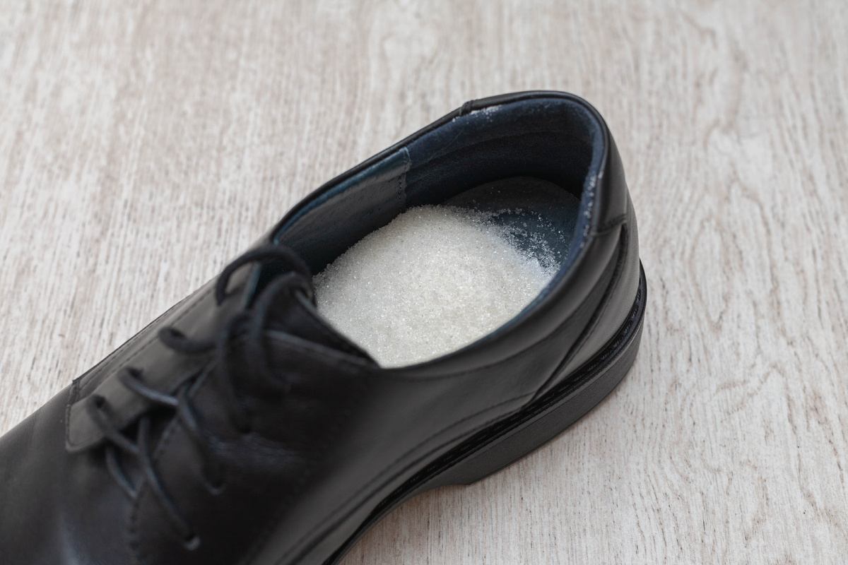 Если после прогулки в дождливую погоду обувь стала источником неприятного запаха, сахар может помочь справиться с этой проблемой.
