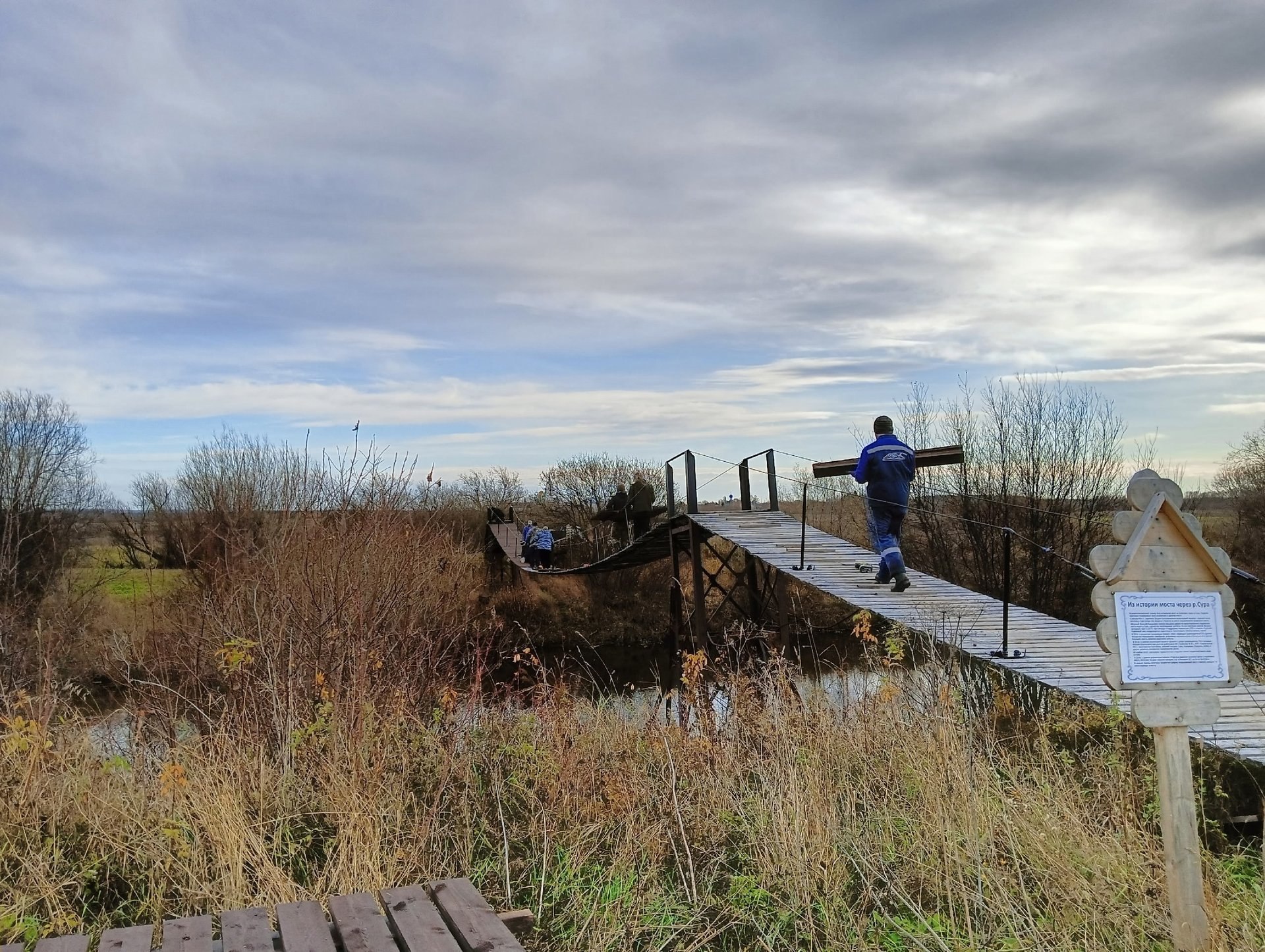 Жители деревни Засурье и села Сура доказали, что невозможное возможно. Их подвесной мост через реку Сура пришел в негодность и требовал срочного ремонта.