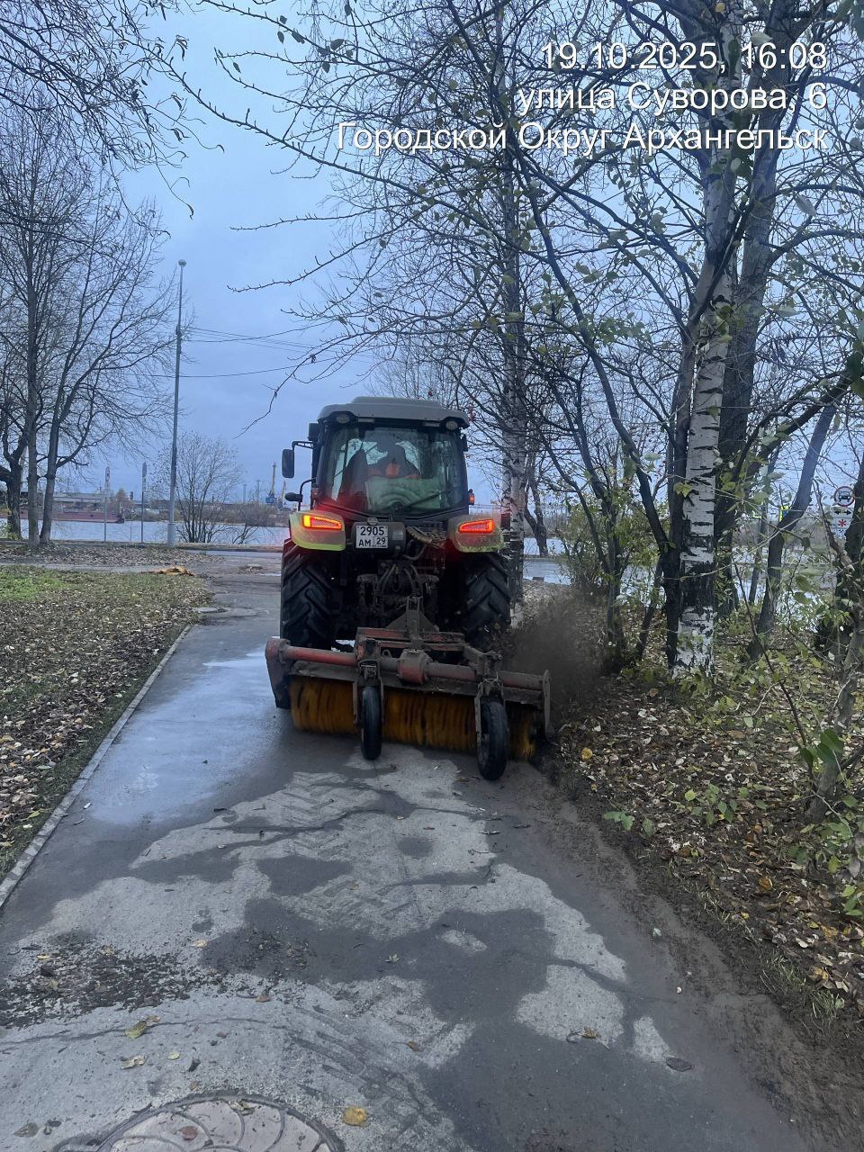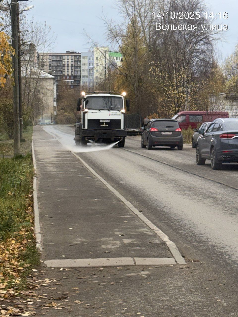 Круглосуточно специалисты проводят мойку тротуаров и проезжей части, очищают прилотковую зону и проводят планировку гравийного покрытия дорог третьей категории.