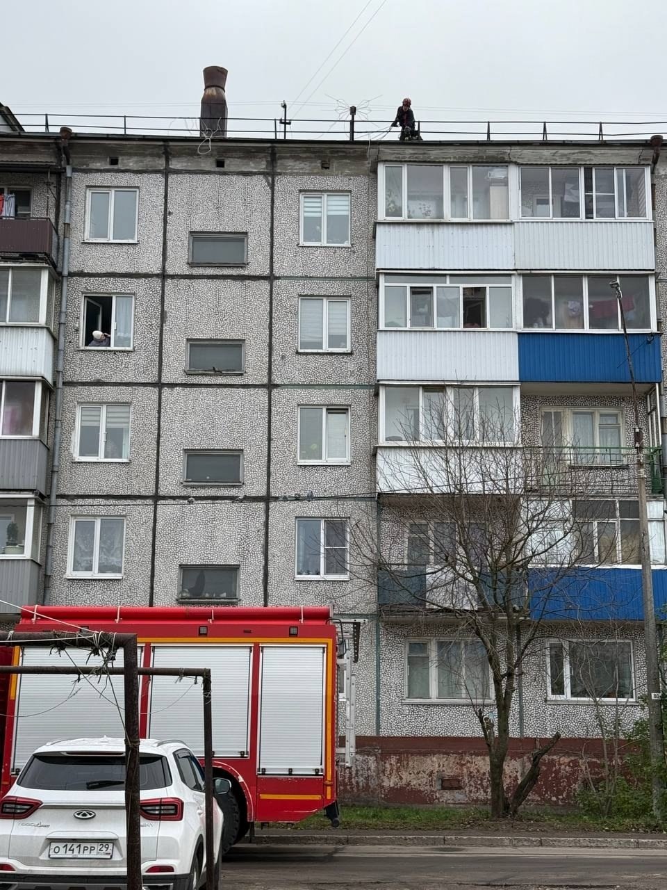 История со счастливым концом: спасатели помогли снять кошку с козырька балкона