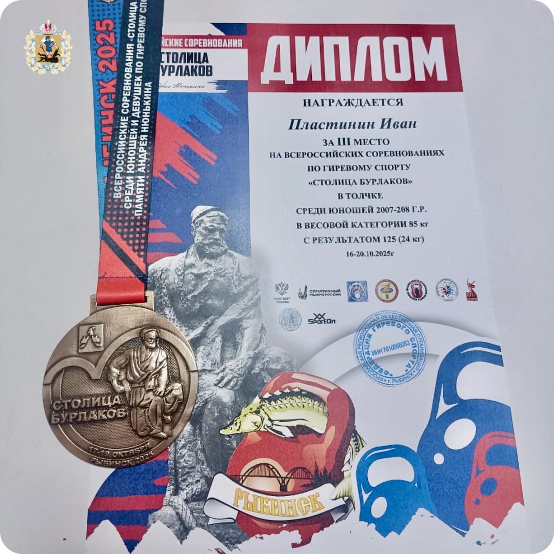 В толчке в весовой категории 85 килограммов Иван Пластинин завоевал третье место с результатом 125 подъемов. Вес гирь составлял 24 килограмма!