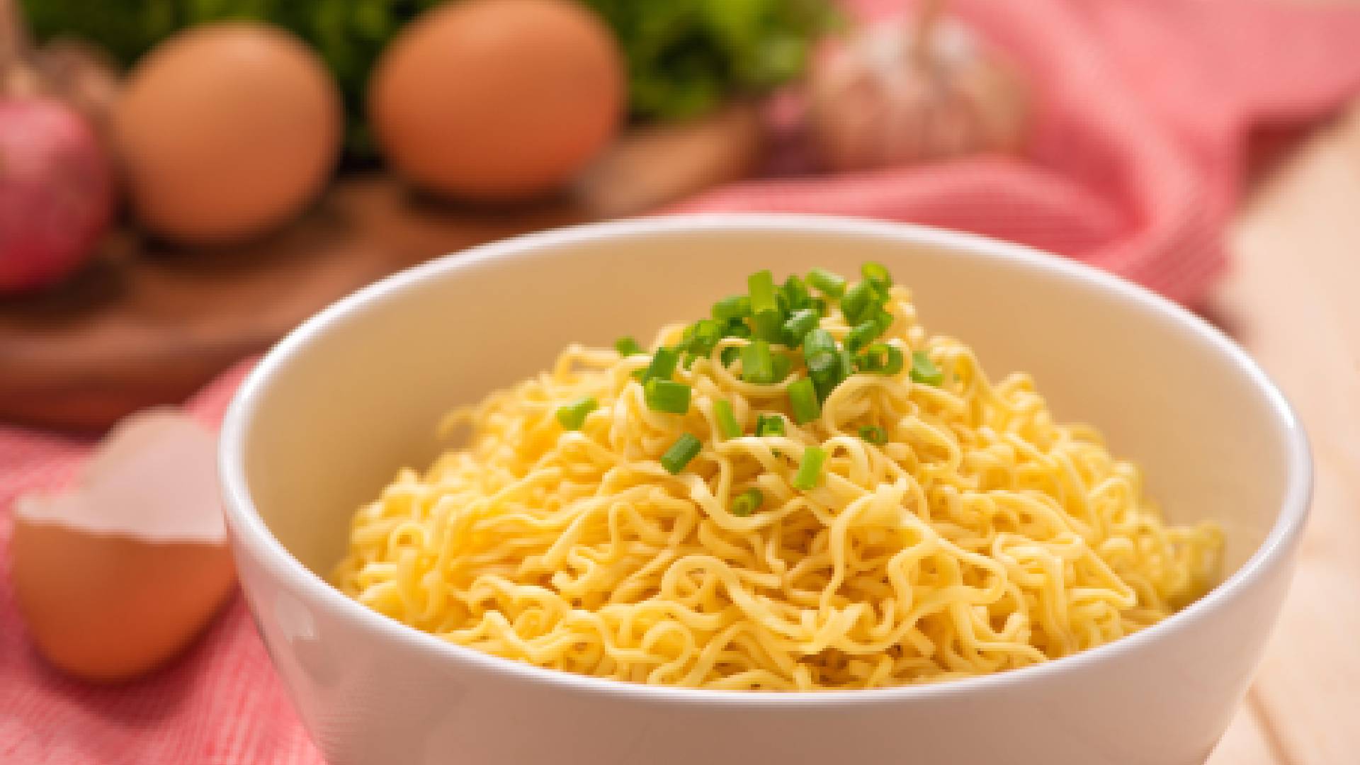 Выложите в глубокую тарелку лапшу и залейте кипятком согласно инструкции. Когда она будет готова, слейте жидкость, но оставьте половину стакана. Бекон нарежьте небольшими ломтиками, сыр натрите на мелкой терке. Желтки смешайте в отдельной тарелке и добавьте к ним сыр.