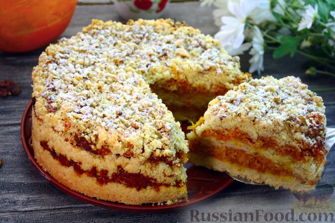 Этот пирог способен удивить даже самого притязательного гурмана. Сочетая муку, манку и сахар с нежной тыквенной начинкой, он создаёт уникальную текстуру. Сначала укладывается сухая смесь, затем добавляется ароматная тыква и все это запекается до золотистой корочки. Пирог посыпается рублёнными орехами — просто невообразимо вкусно!