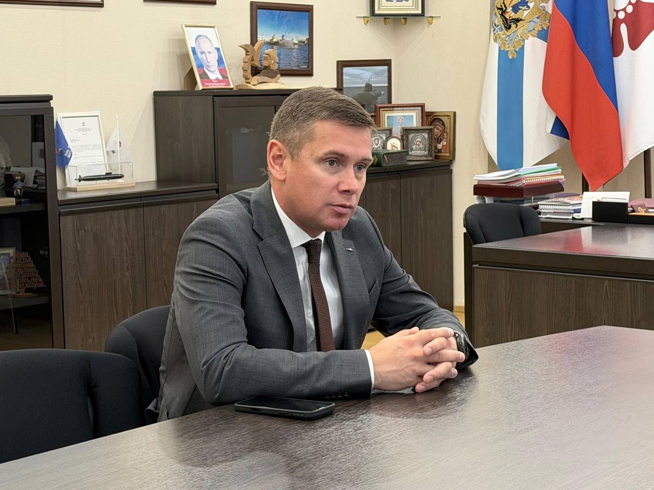 Сегодня рабочий день начал со встречи с участниками кадровой программы «Защитники. Под крылом Архангела» Константином Улановым и Дмитрий Ошурковым. Сейчас ветераны СВО проходят вторую стажировку: после теоретического курса - практика, где защитники получают новые компетенции, свои знания и опыт они могут применить в дальнейшей работе.