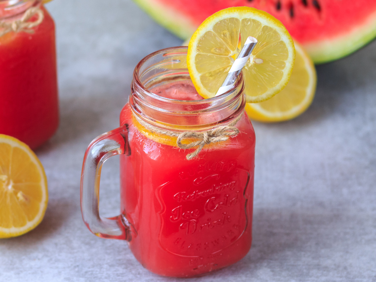 Теперь пришло время арбуза! Вам понадобится 1 кг чистой мякоти. Положите ее в блендер и взбейте в однородную массу в течение 30–60 секунд. Получите около 750–800 мл насыщенного арбузного сока. Затем соедините его с процеженным сиропом и добавьте 125 мл свежевыжатого лимонного сока, что составляет примерно два крупных лимона. Легкое перемешивание в блендере в течение 20–30 секунд сделает ваш лимонад идеальным.