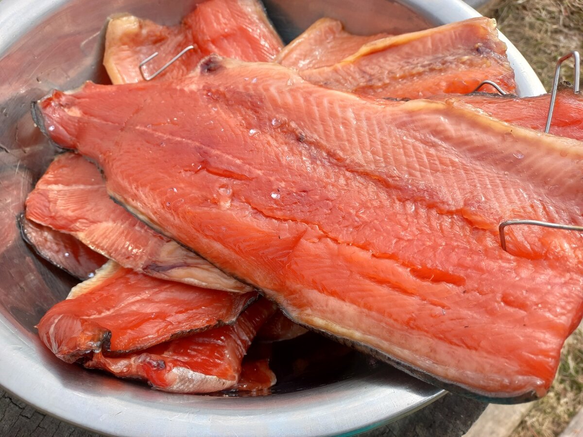 Когда филе покроется корочкой, начинается этап копчения. Для этого рыбу помещают в коптильный шкаф на 3-4 часа, поддерживая температуру около 23-24 градусов. В летнее время рекомендуется проводить эту процедуру ночью, чтобы избежать перегрева, который может испортить вкус.