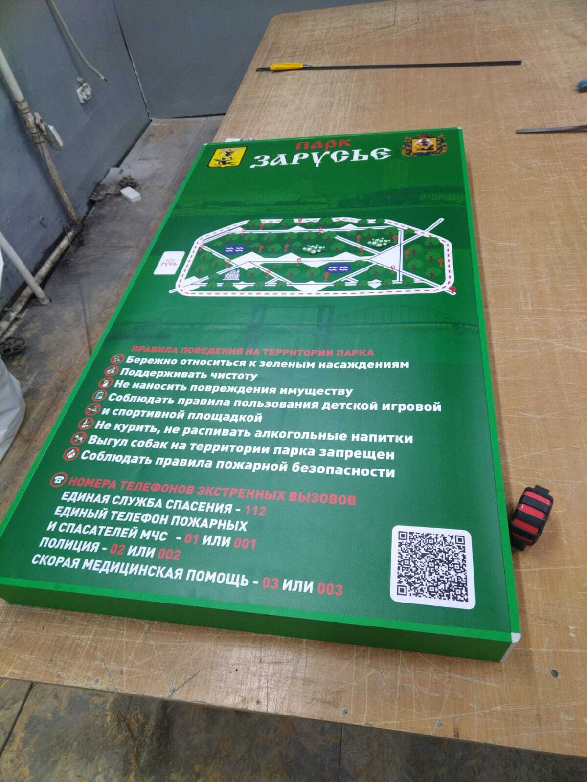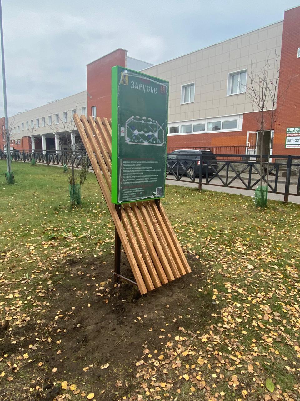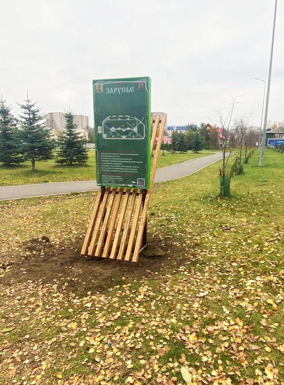 Светящая конструкция необычной формы пришла на смену табличке с правилами поведения на территории отдыха, которая вопреки этим правилам пострадала от вандалов.