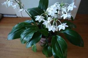 Цветение начинает радовать глаз в конце лета или начале осени. Нежные и ароматные цветы длиной до 80 см собираются в зонтиковидные соцветия, создавая великолепное зрелище, схожее с нарциссами. Стремление получить цветы эухариса требует особого внимания – в противном случае растение может не зацвести.
