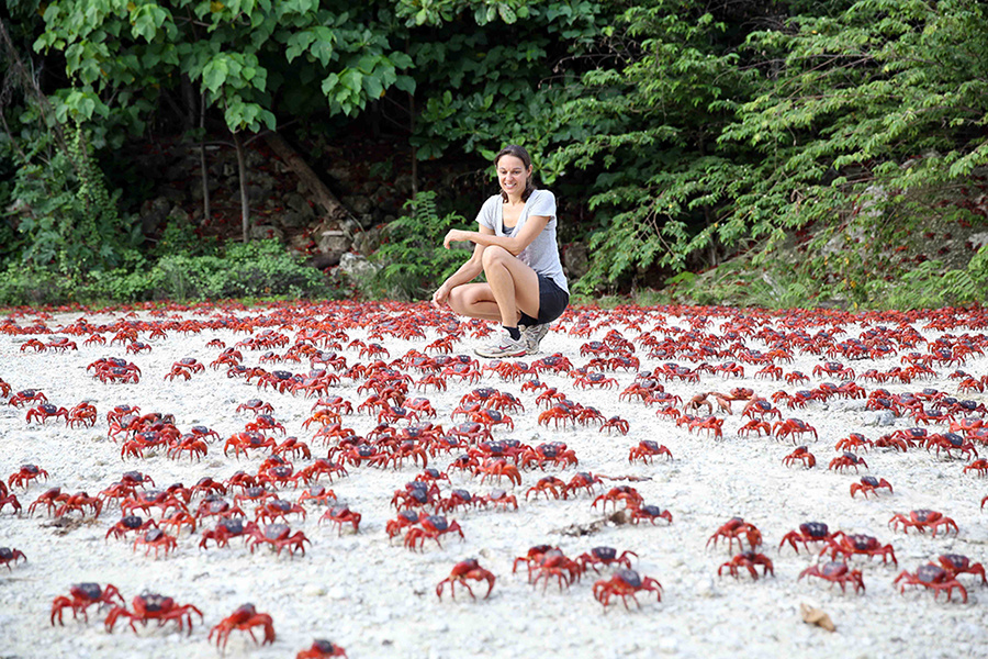 С началом сезона дождей, красные крабы, обитающие в лесах острова, спешат к побережью, превращая его в живописный багряный ковер. По подсчетам биологов, на каждый квадратный метр этого небольшого уголка природы приходится по одному крабу, что создает абсолютно уникальный и незабываемый маршрут.