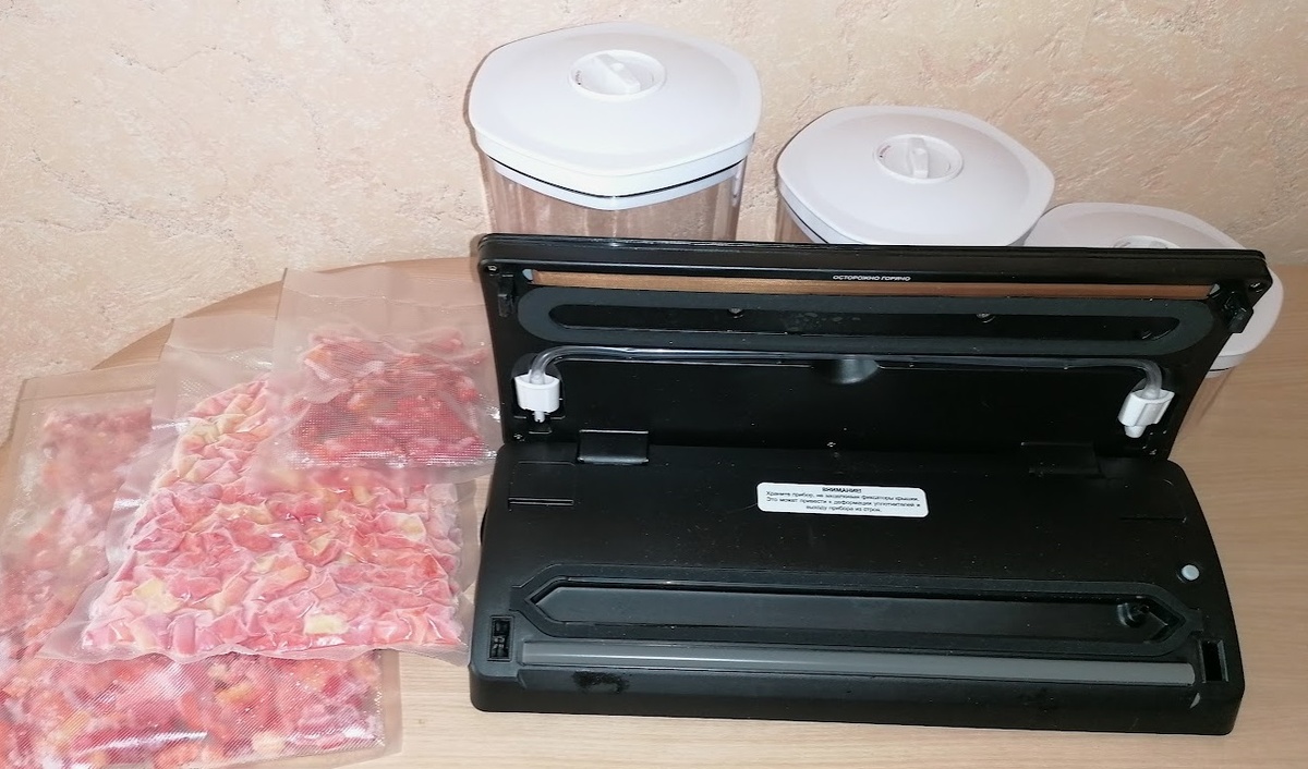 - Вакууматор помогает оптимизировать пространство в морозильной камере, что особенно актуально во время заготовок на зиму. Вместо традиционной консервации можно замораживать овощи, фрукты и зелень, сокращая занимаемое место в морозильнике.