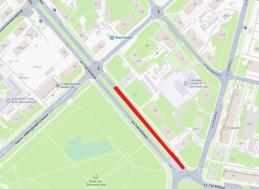 С 10.00 28 октября до 24.00 29 октября для восстановления асфальтобетонного покрытия будет частично закрыта для движения транспорта ул. Гагарина от ул. Розинга до пр. Обводный канал (в направлении движения к пл. Предмостной).