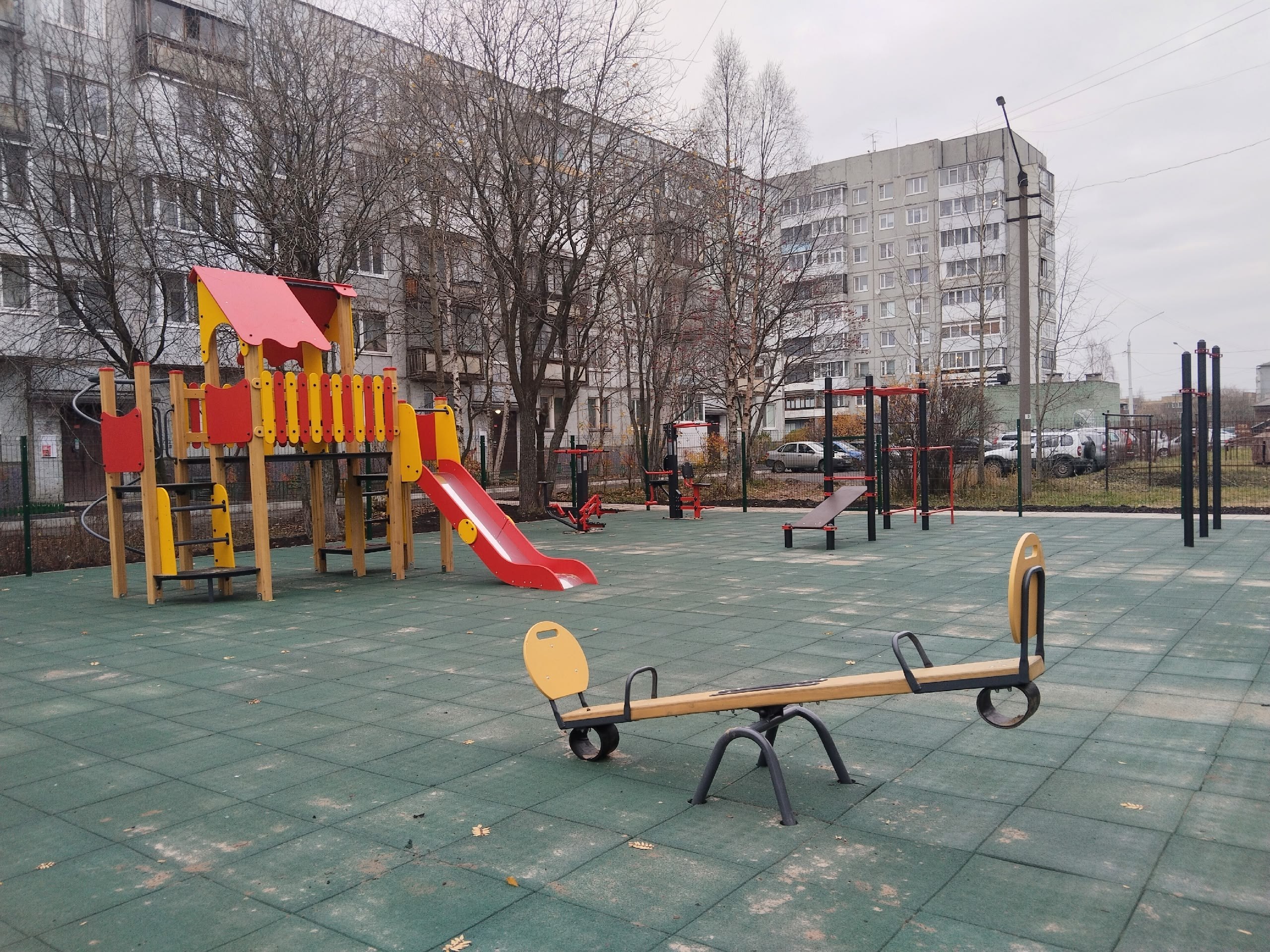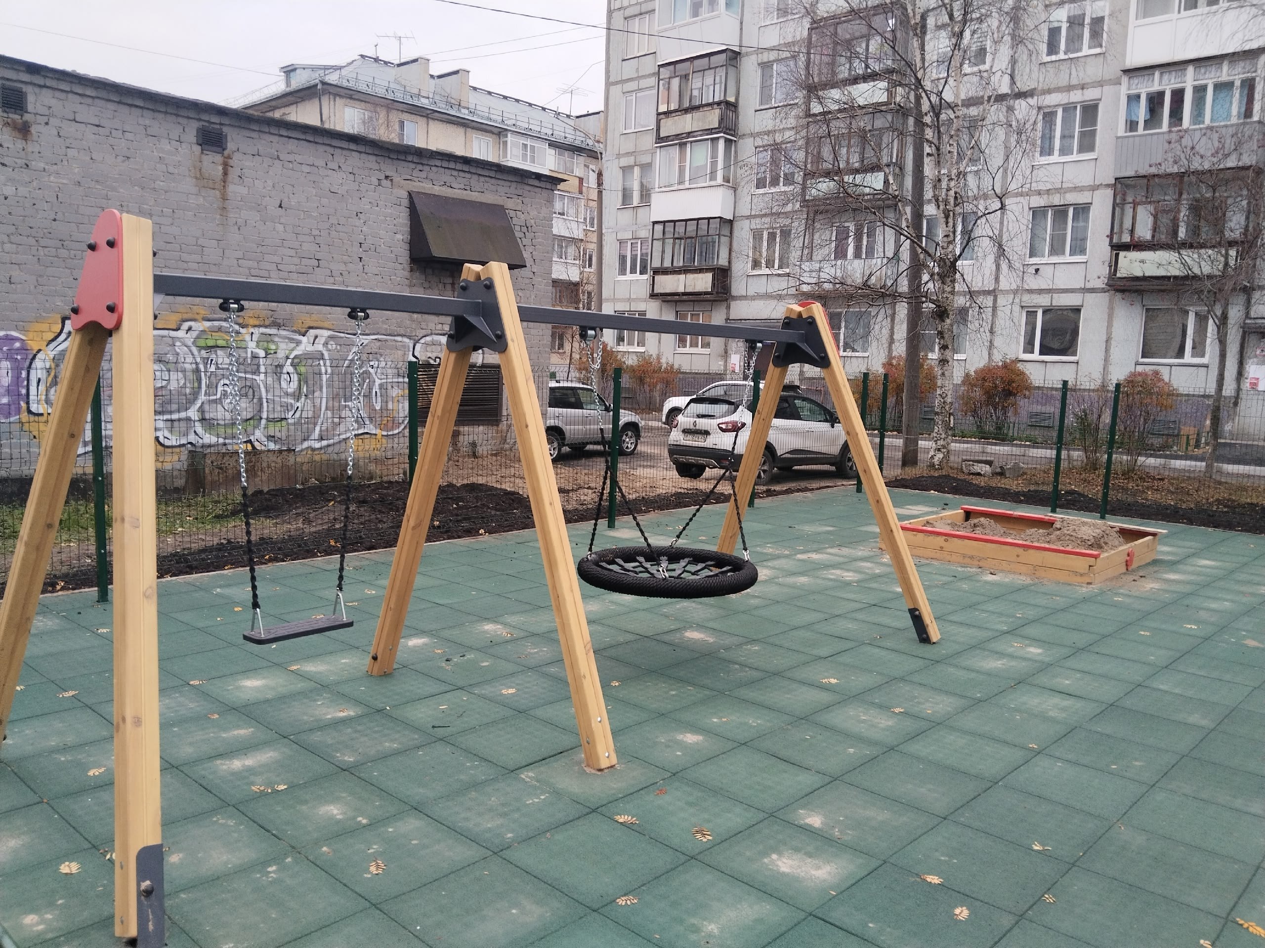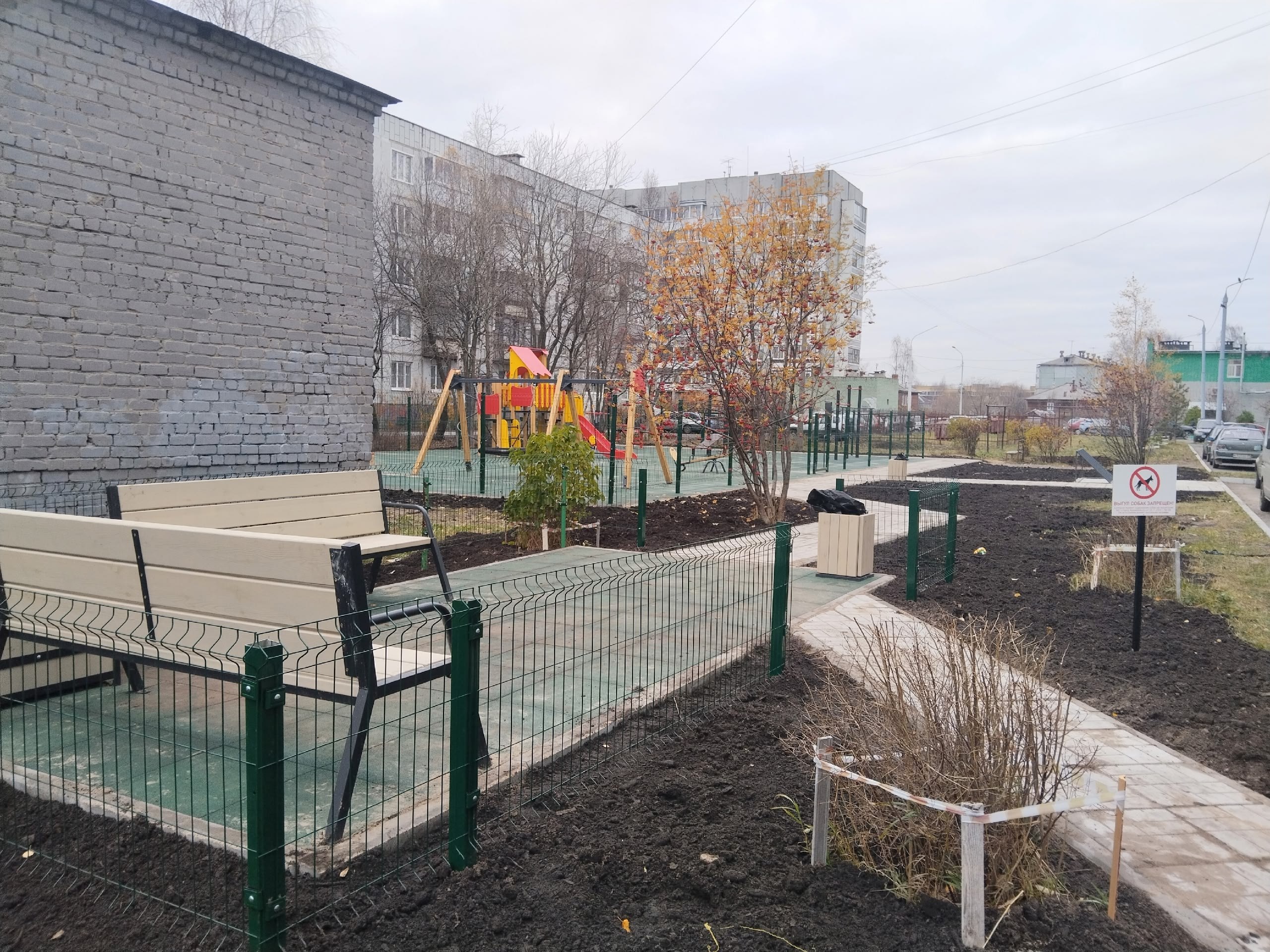 Комфортное и безопасное место для разнообразного провождения времени на открытом воздухе для жителей всех возрастов. Для малышей есть яркая песочница и качели, для ребят дошкольного возраста - детский игровой комплекс, для подростков предусмотрены элементы для силовых тренировок, для любителей спорта установлены уличные тренажеры, а для отдыха и бесед организована отдельная "тихая территория". Прилегающая территория также распланирована с максимальным сохранением имеющихся зеленых насаждений и возможностью дальнейшего озеленения.
