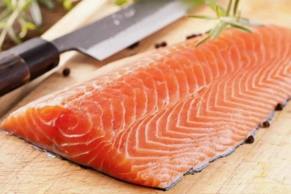 - Красная рыба (сёмга, форель, горбуша) — 1 кг (подходит целое филе с кожей). Если рыба замороженная, рекомендуется размораживать её в холодильнике.