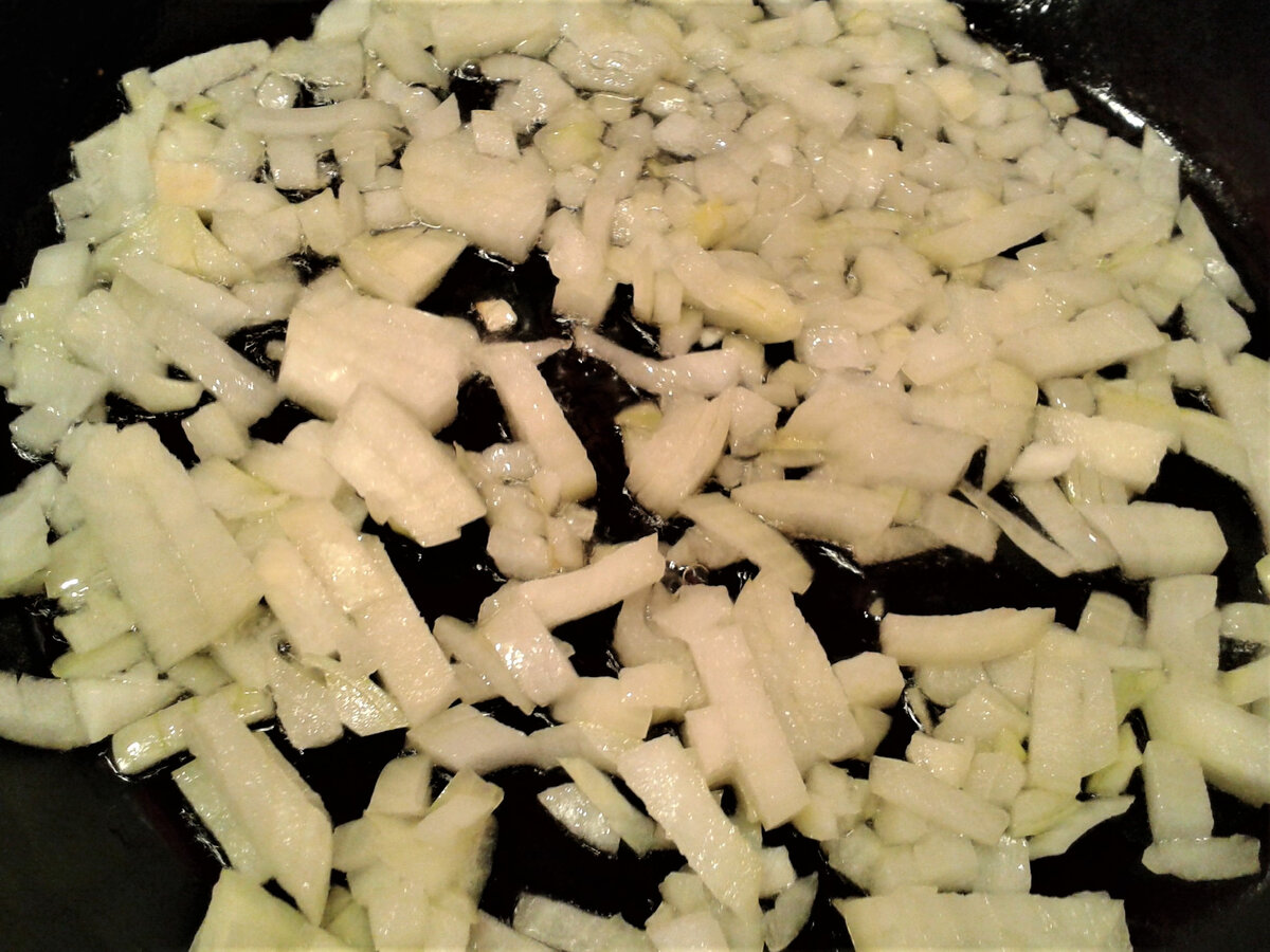 Начните с нарезки лука и его обжаривания на среднем огне до легкой золотистости – это займет всего 5 минут. Затем подготовьте маслины: лучше всего использовать безкосточные, нарезав их на колечки.
