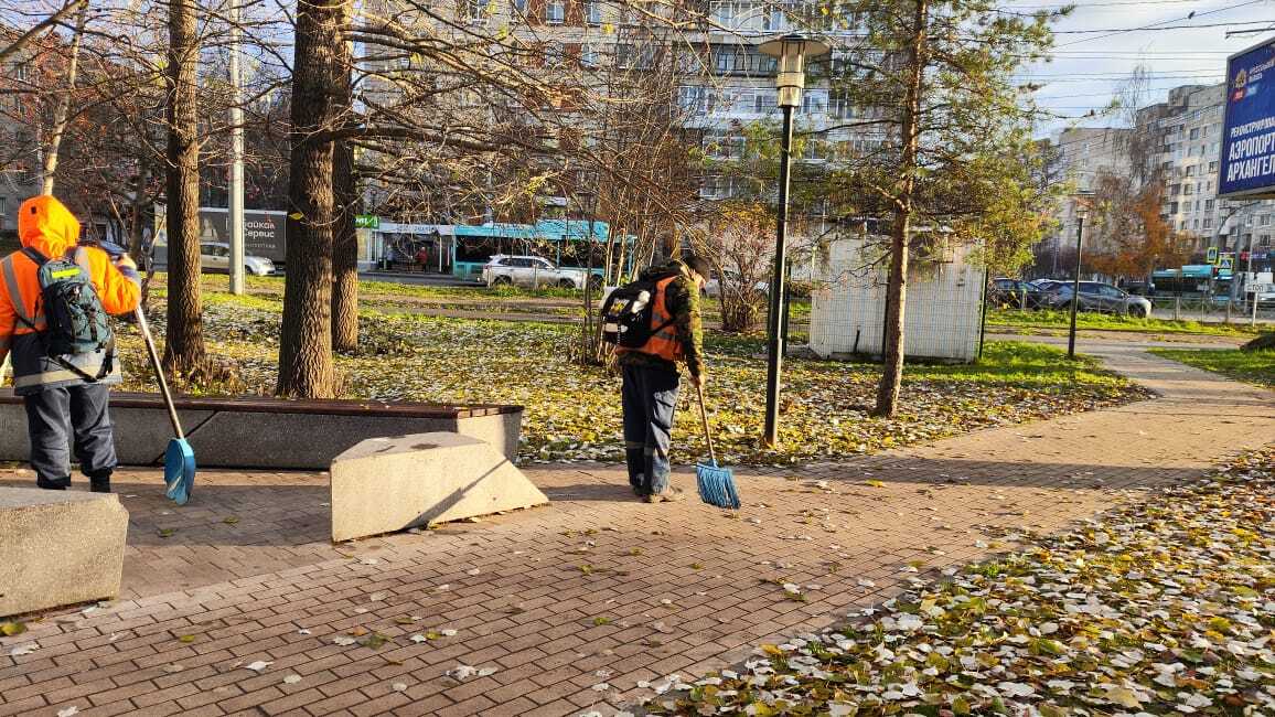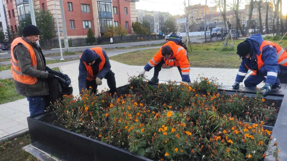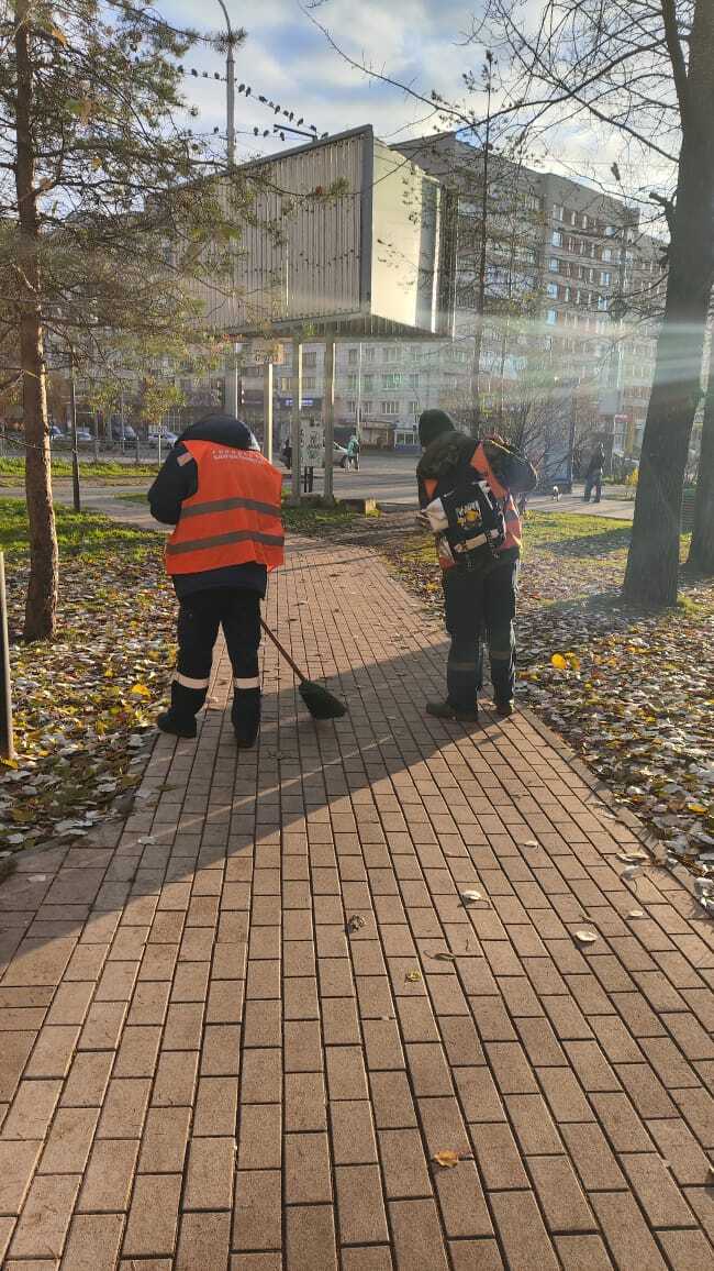 Сотрудники "Городского благоустройства" проводят уборку закрепленных за предприятием территорий: убирают опавшую листву, очищают дорожки и урны от мусора, готовят цветники к зиме.