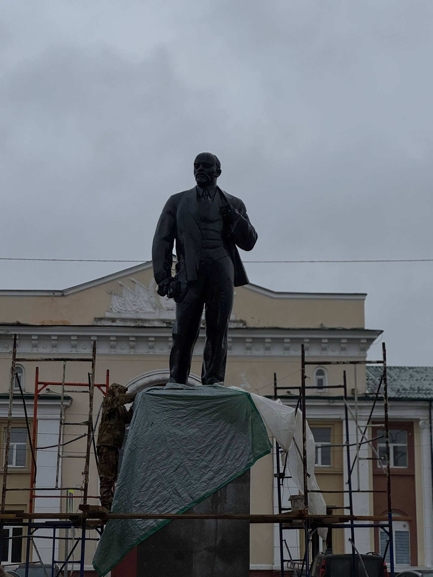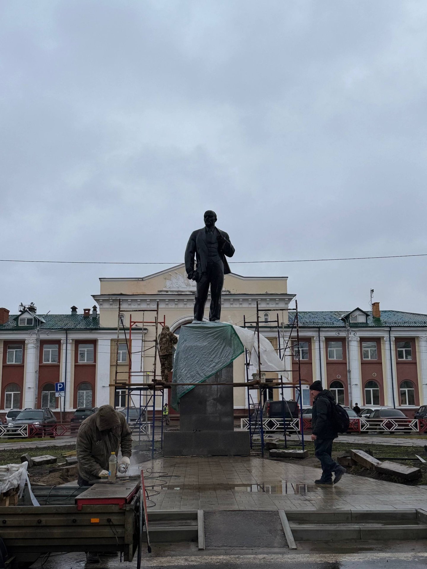 На привокзальной площади Котласа кипит работа по ремонту памятника В.И. Ленину. Работы по текущему сооружения проводятся в рамках регионального проекта «Комфортное Поморье», инициированного губернатором Архангельской области Александром Цыбульским.