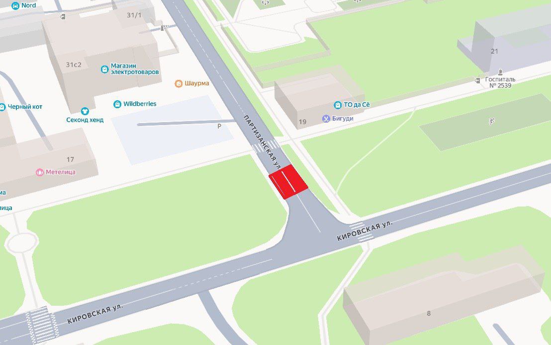 По 19 ноября полностью закрывается движение транспорта по ул. Партизанская в районе пересечения с ул. Кировская. Перекрытие необходимо для проведения аварийно-восстановительных работ по ремонту водопровода.