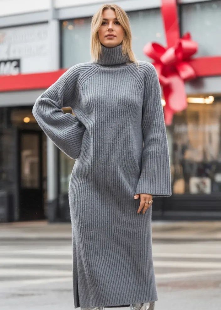 В этом месяце особую популярность набирает трикотажное платье-свитер. Такой элемент гардероба гармонично сочетает уют и женственность, создавая образ, который не оставит равнодушными. Длинные, обтягивающие, или наоборот, свободного кроя платья станут основой многих осенних луков. Их можно смело сочетать с ботинками на низком ходу или удобными кроссовками.