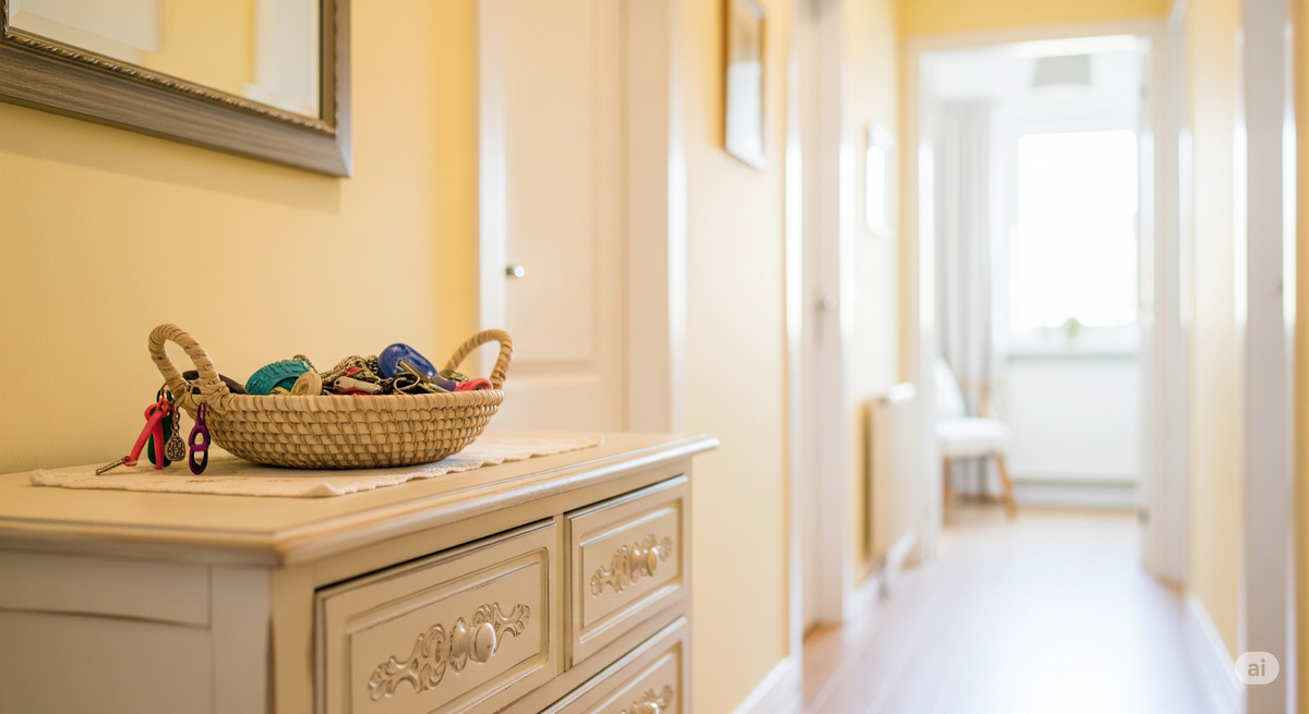 - Создайте специальное место для ключей — крючок у двери или уютная чаша, куда будут возвращаться ключи в конце дня.