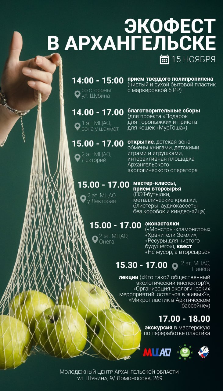 15 ноября в Архангельске пройдет Экофест! Приходите отметить Всемирный день переработки и увидеть, как просто быть экологичным в повседневной жизни.