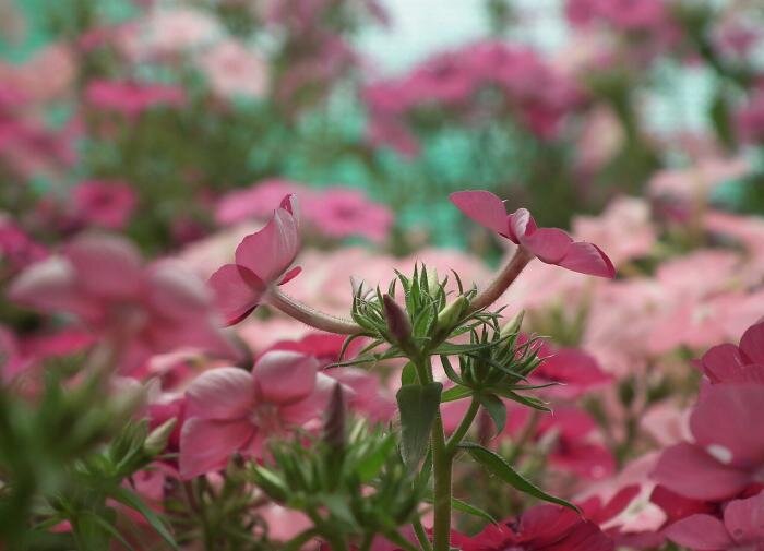 Высота флоксов варьируется от 15 до 40 см, а цветки, диаметром до 2 см, собираются в плотные соцветия. Их окраска радует разнообразием: от элегантного белого и нежного кремового до насыщенных розовых, фиолетовых и красных тонов, с возможными двух- и трехцветными комбинациями. Среди сортов выделяются флоксы с цветами в форме звёзд — они особенно декоративны и придают необычный шарм любой клумбе.