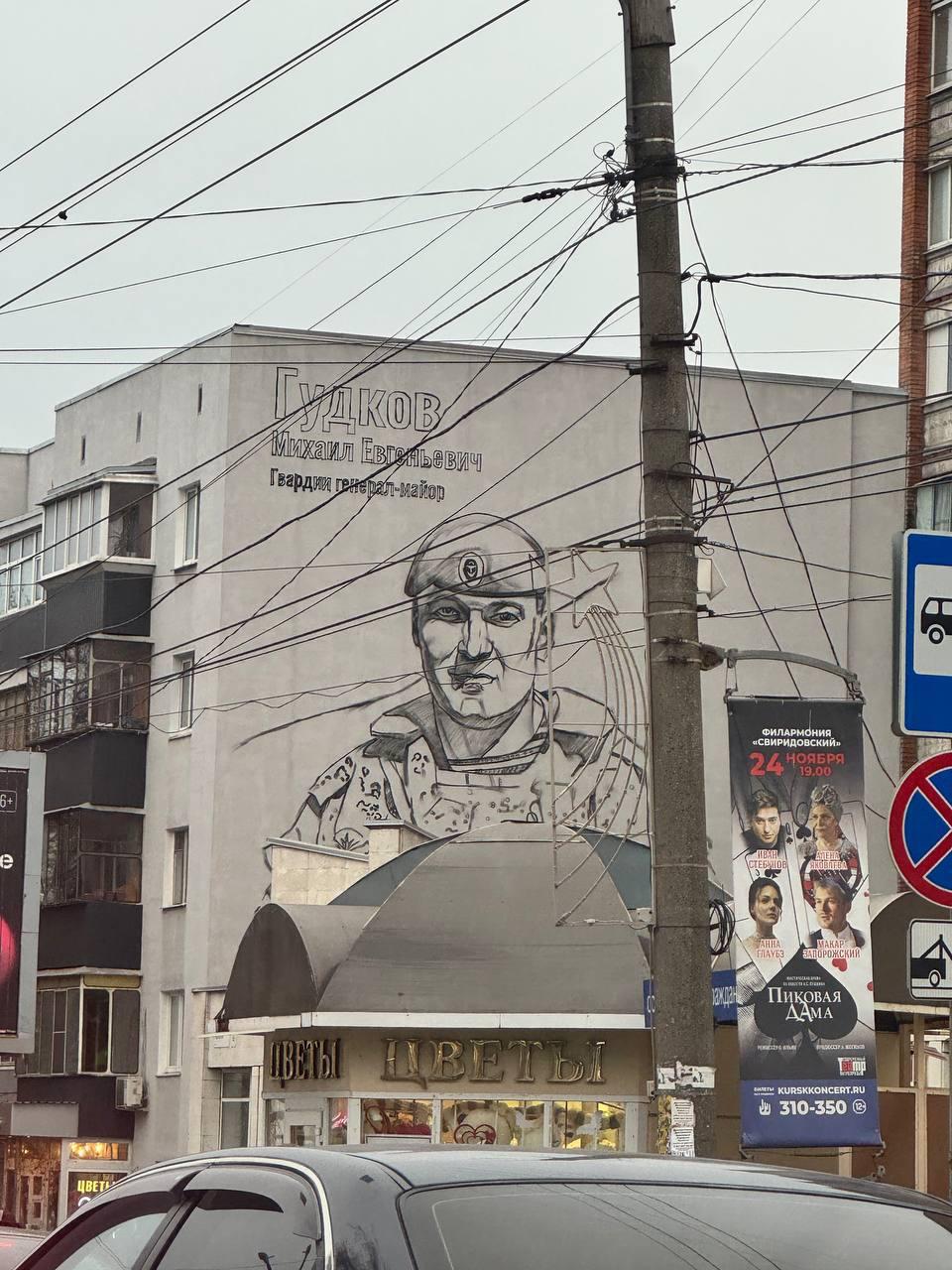 В Курске на Радищева создают мурал в память о дважды Герое России Михаиле Гудкове. Михаил Гудков был командиром 155-й отдельной гвардейской Курской, орденов Жукова и Суворова бригады морской пехоты с позывным «Варяг».