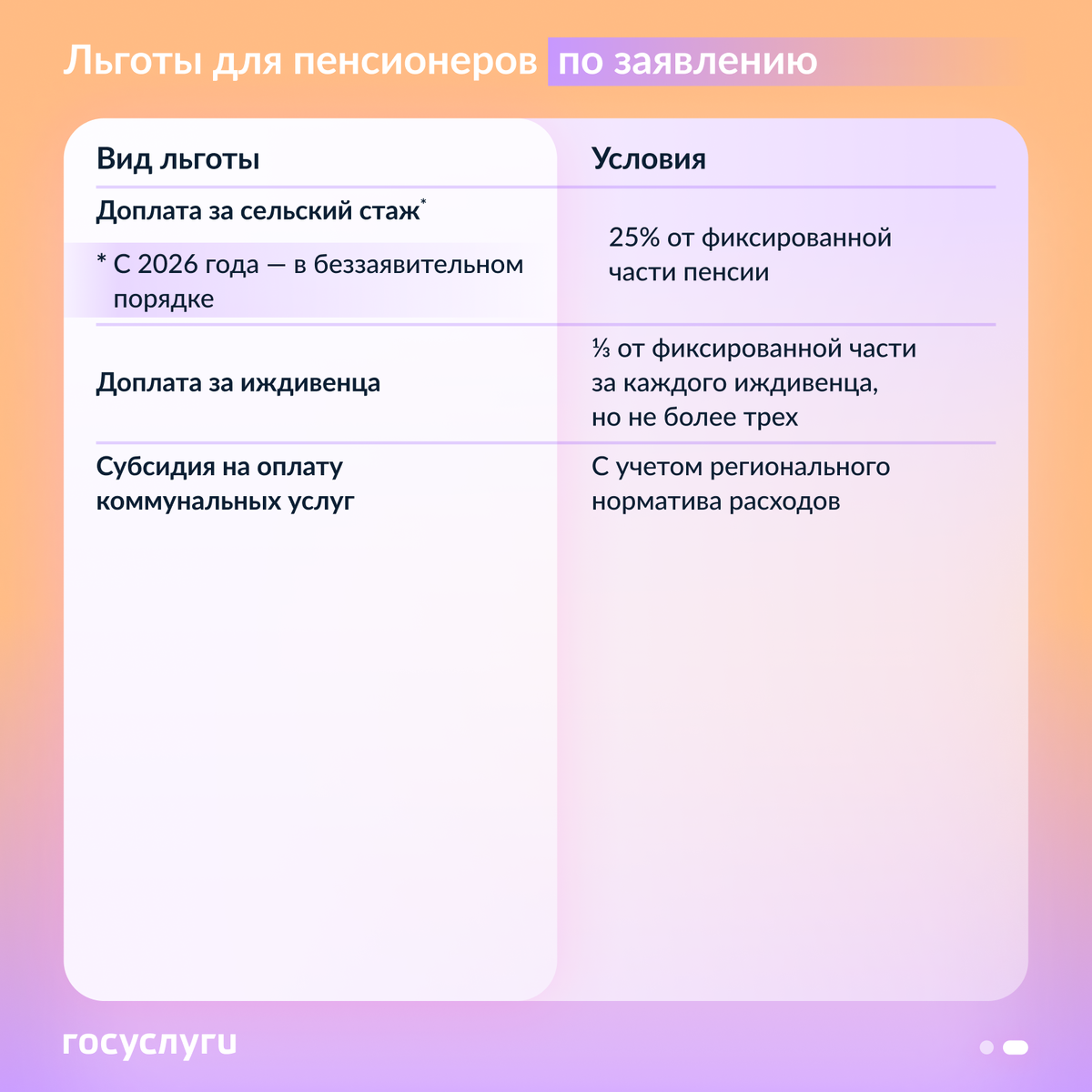Льготы, требующие обращения