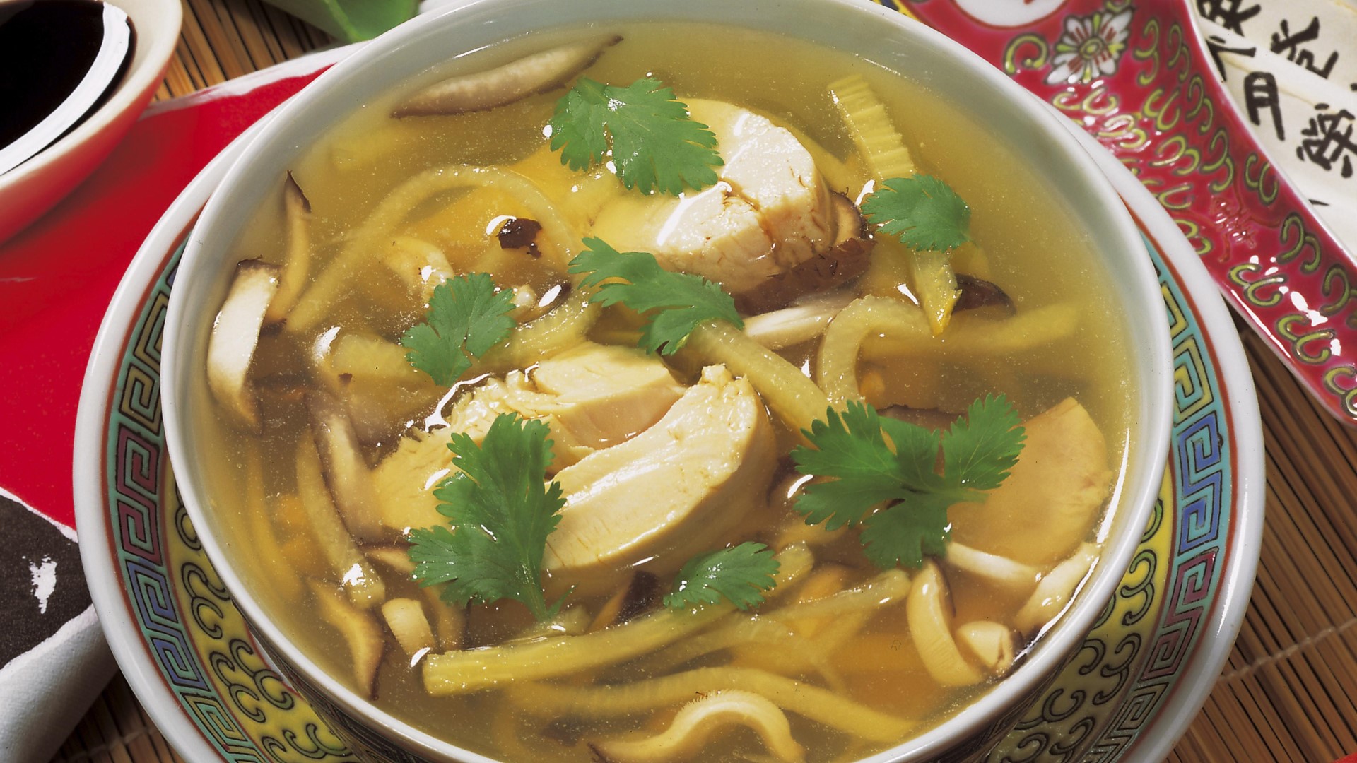 «Кипятим еще минуту и выключаем нагрев. Даем постоять пять минут, затем добавляем стеклянную лапшу и настаиваем семь–восемь минут. Подаем суп с отварным яйцом и нарезанной куриной грудкой», — рассказал шеф-повар в беседе с порталом «Городовой».