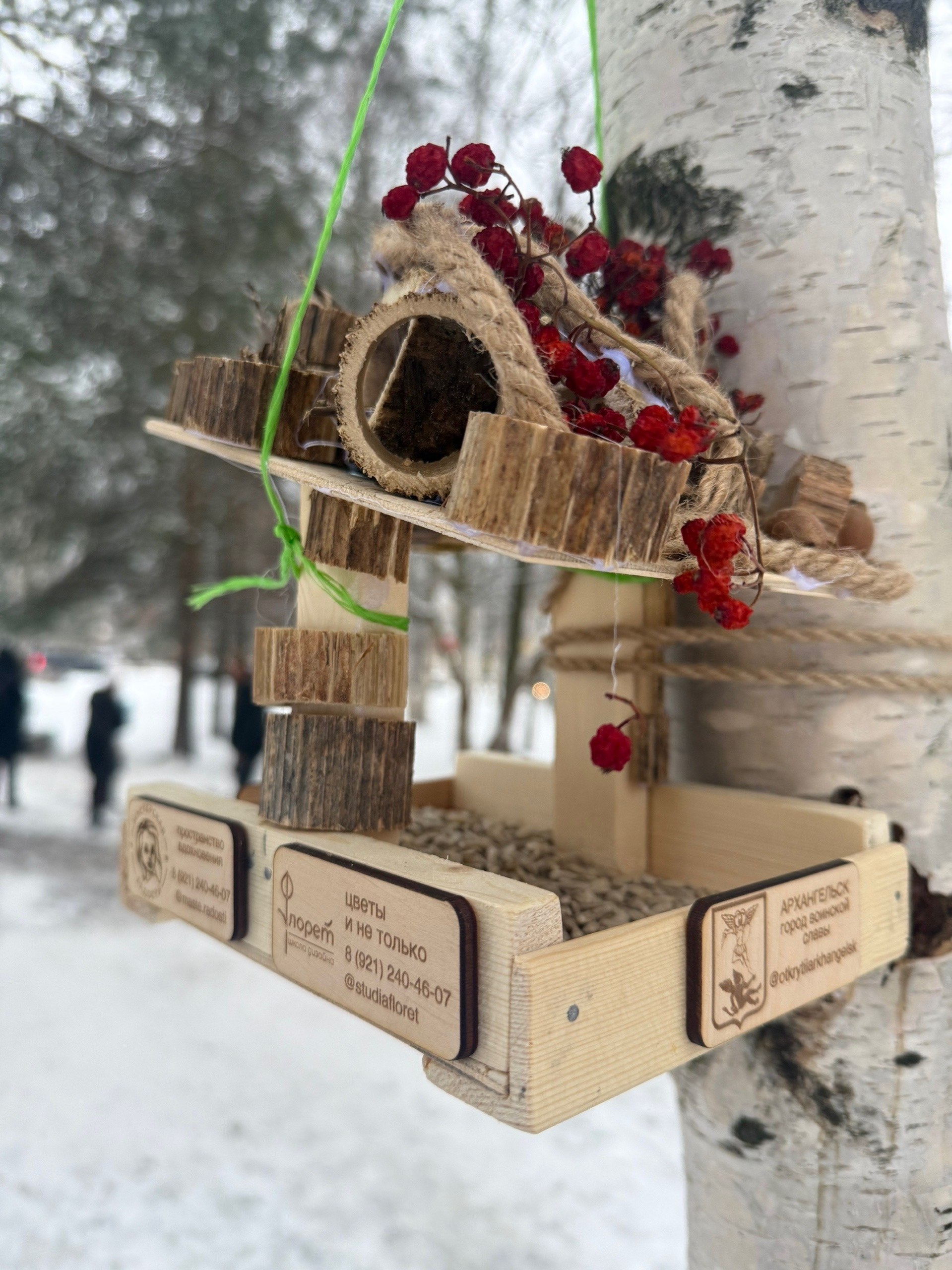 Мария Нестеренко, директор конкурса красоты «Миссис Архангельск и Архангельская область» поделилась: «Идея родилась еще весной, во время финала конкурса. Я всегда стремилась, чтобы наш конкурс был не только о красоте, но и о заботе об окружающем мире. Узнав о Дне синички, я не смогла пройти мимо. Так придумались кормушки, которые хотелось подарить городу».
