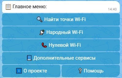 Предусмотрен в боте и так называемый «Нулевой Wi-Fi». Там указаны мобильные сервисы, услуги в которых можно получать без интернета, а лишь с помощью голосовой связи. Прямо сейчас это номера телефонов служб такси.