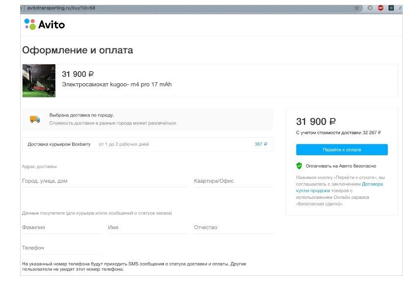 Мошенники часто используют поддельные сайты, создавая копии знакомых интернет-ресурсов. Например, один из покупателей, надеясь на выгодную сделку по продаже электросамоката, получил ссылку на фальшивую страницу, имитирующую официальный сайт Авито. Введя свои данные для оплаты, он стал жертвой кражи средств, так и не получив товар.