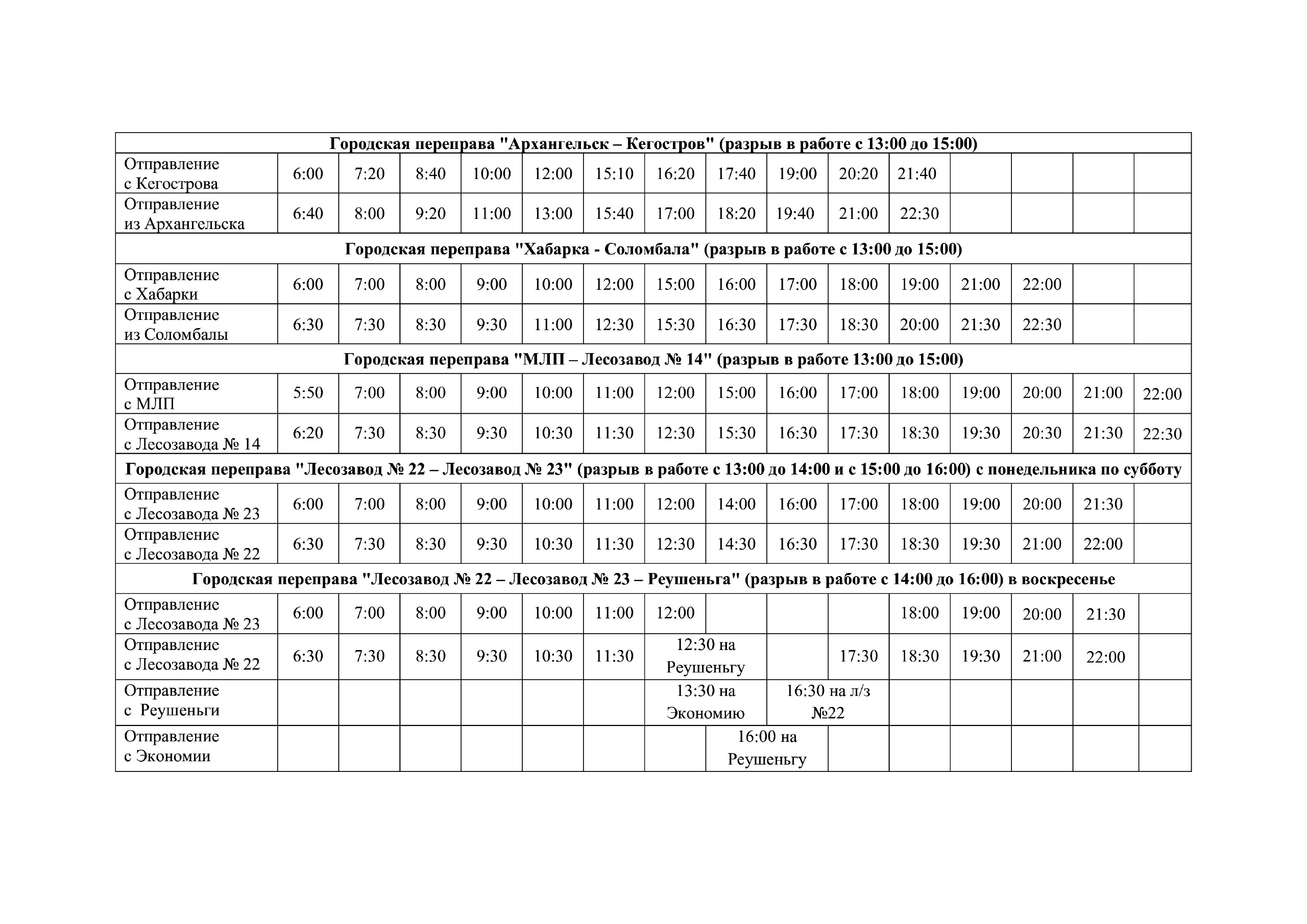 Коррективы внесены в графики на линиях Архангельск – о. Кего, МЛП – 14 лесозавод.