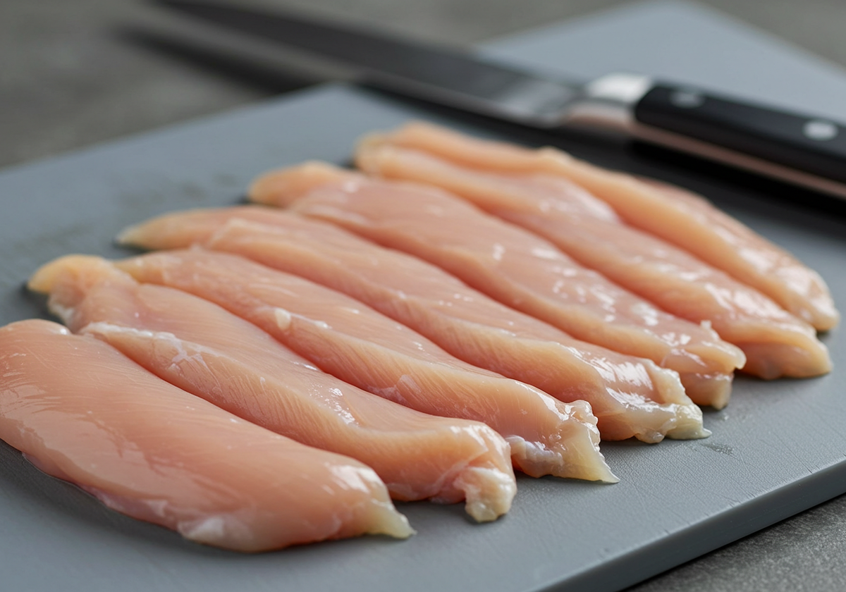 Первым делом следует выбрать качественное куриное филе. Важно удалить кожу и лишний жир, после чего тщательно промыть мякоть. Затем нарежьте филе на полоски шириной примерно 2,5 см. Ровные куски обеспечат равномерную готовность, а аккуратная нарезка упростит процесс панировки.