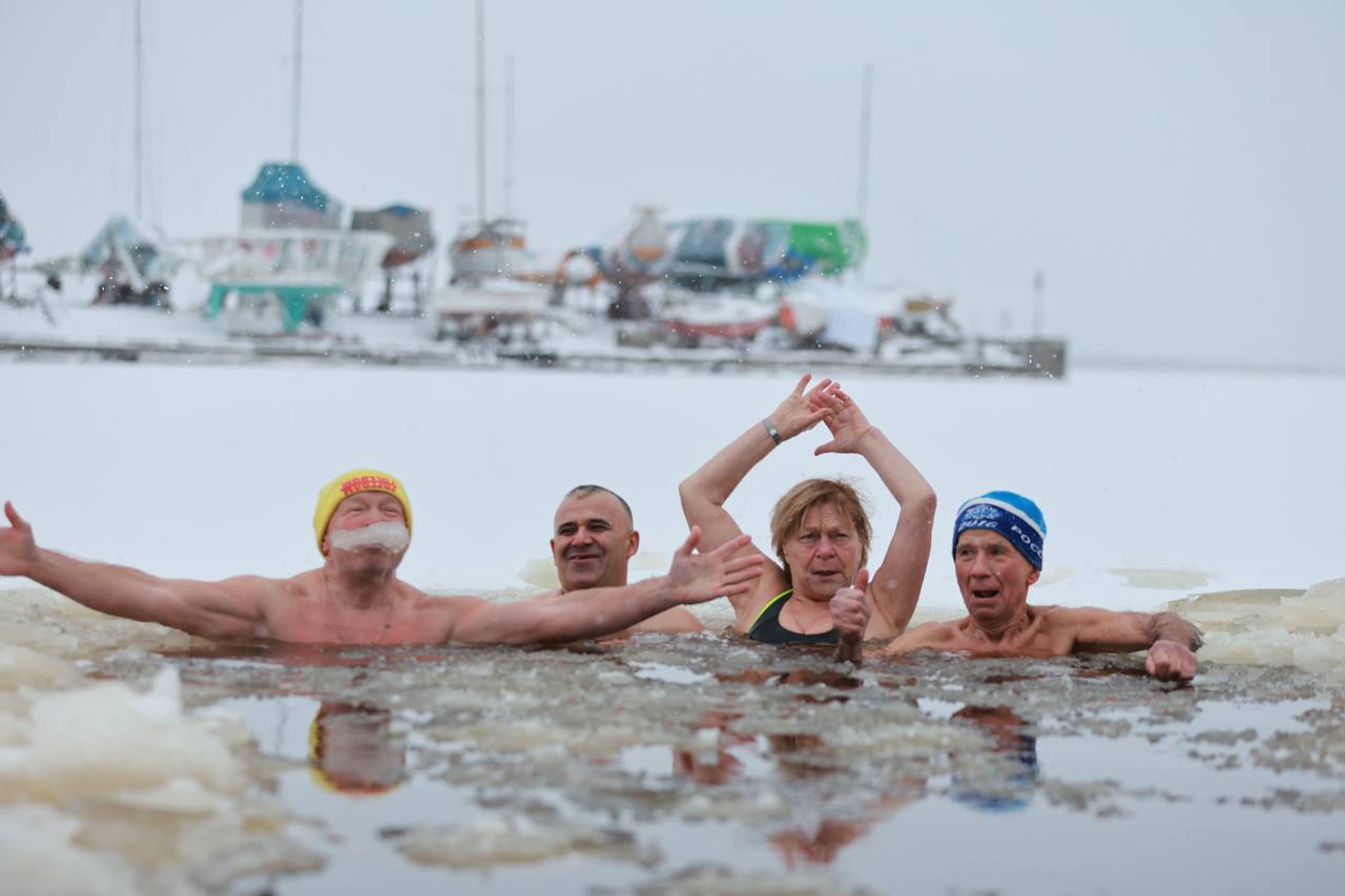 23 ноября они начали свой день с бодрящего закалпробега, а затем с радостью окунулись в ледяную воду. Это зрелище, от которого стынет кровь, но у участников на лицах были только улыбки и заряд бодрости!