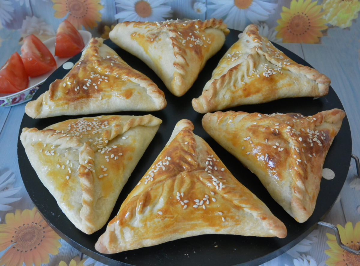 Затем выложите курники на пергаментную бумагу, смажьте их желтком и посыпьте кунжутом для хрустящей корочки. Выпекайте в заранее разогретой духовке при температуре 180 градусов в течение 30-35 минут. Пирожки должны стать золотистыми и ароматными.