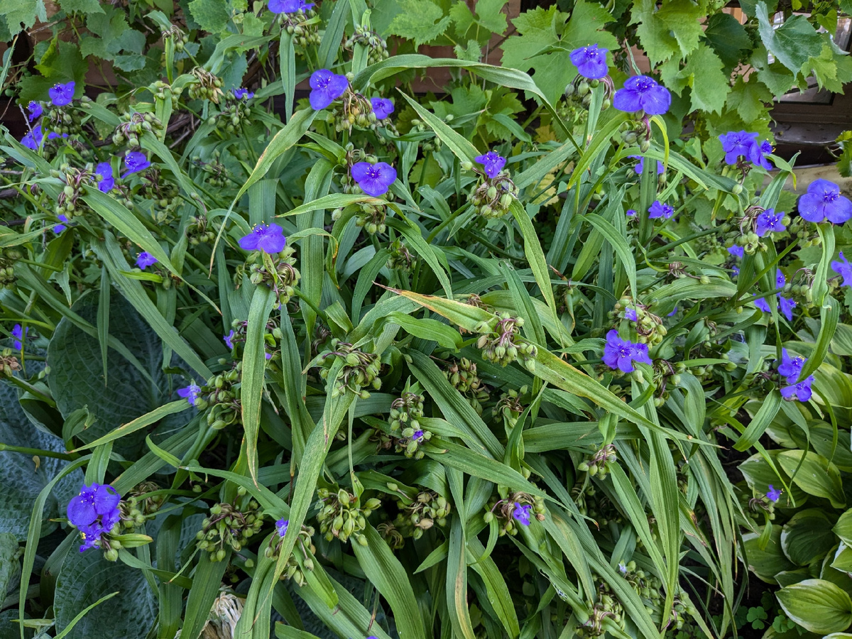 Хотя хосты могут похвастаться впечатляющим разнообразием форм и фактур листвы, традесканция радует глаз своими яркими цветами, которые даже не требуют особого ухода. Многие садоводы отмечают один из основных недостатков традесканции — её вид после окончания цветения. Некоторые считают, что в это время растения становятся неказистыми, и цветочные гроздья лишь портят общий вид сада.