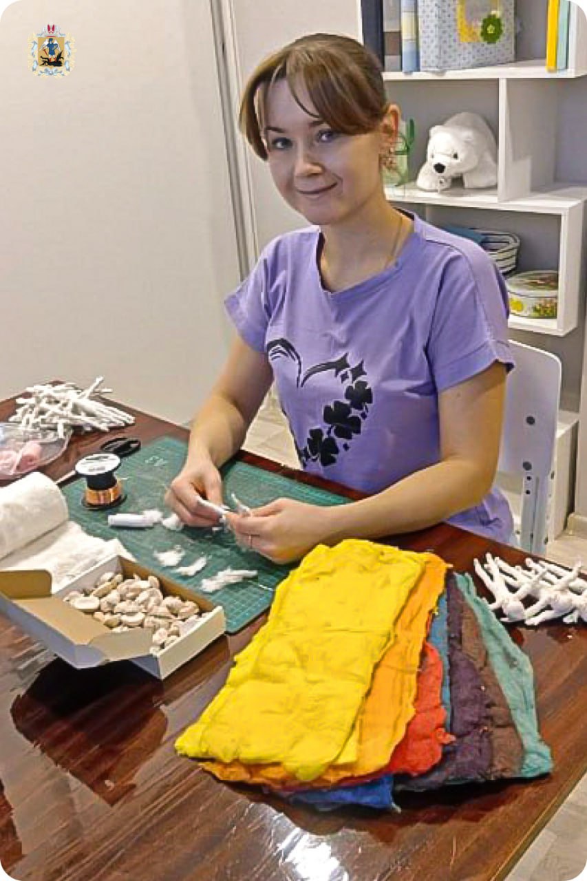 Удивительные игрушки создаёт Алёна Кавадеева из Холмогор. В 2023 году на мастер-классе Алёна открыла для себя удивительный мир ватной игрушки. С тех пор обычная вата и проволока в её руках превращаются в невероятно детализированные фигурки!