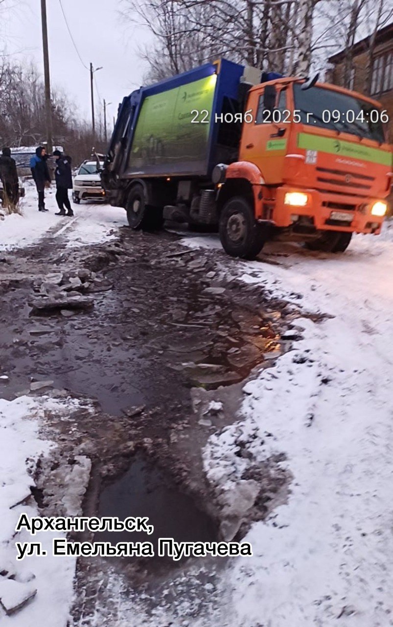 Мусоровозы буксуют из-за нерасчищенных сугробов на маршрутах Архангельской области